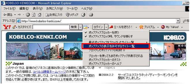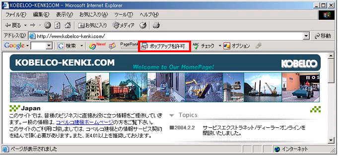 | ポップアップブロックにより正しく動作しない場合は |